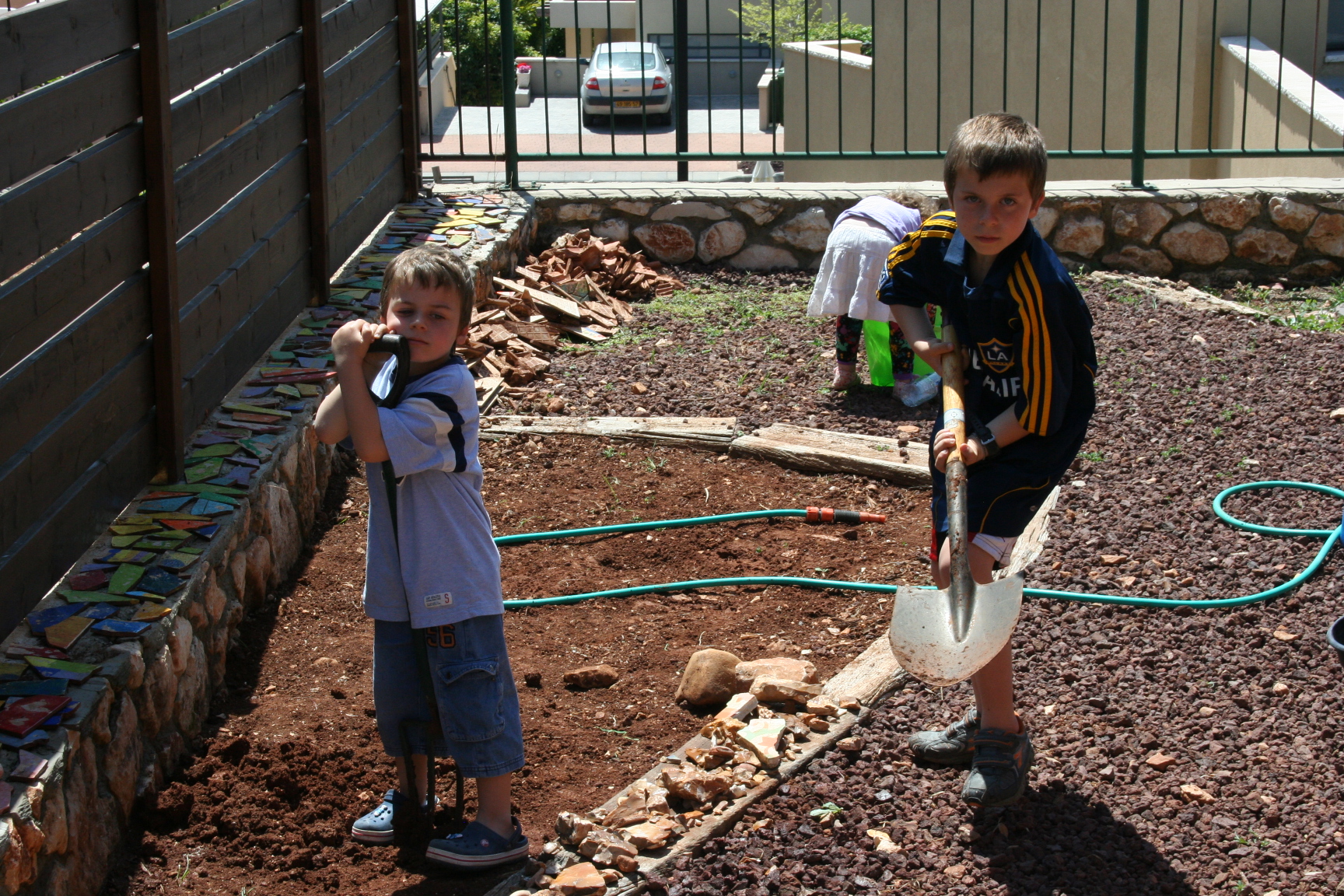 Boys working the land